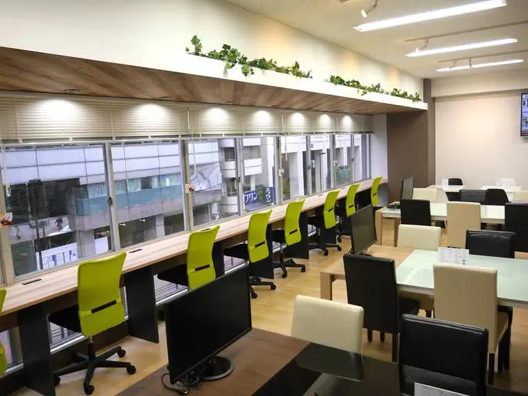 各地に展開している「勉強カフェ」初の、日本橋エリアの店舗です。「勉強カフェ」最大級の席数で、テーブル席や個室だけでなくテラス席もあります。茅場町駅はもちろんこと、八丁堀駅や水天宮前駅からも徒歩圏内。作業の合間にテラス席で外の空気を吸うなど、息抜きをしながら仕事ができる環境です。